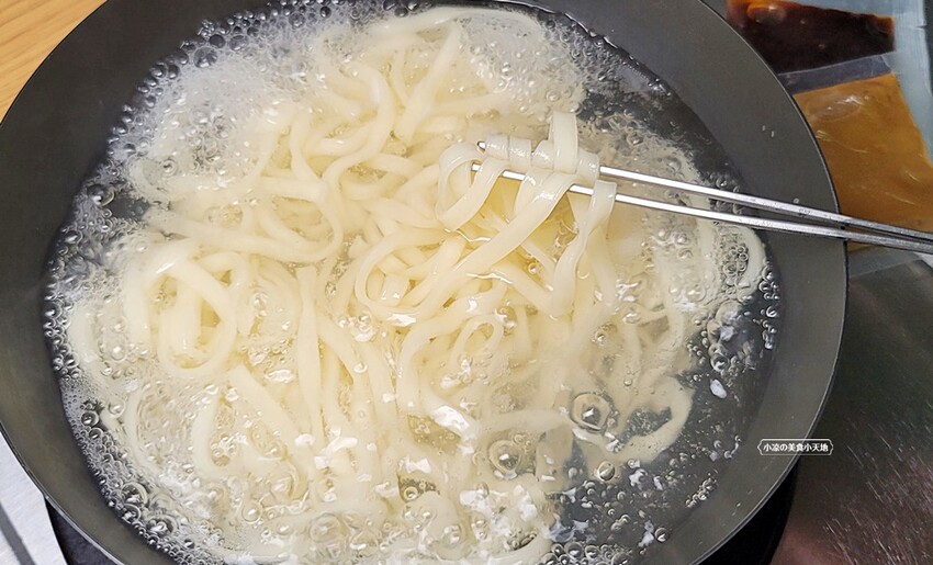 切記! 麵體入滾水真的只需要10秒,就能保有Q彈的口感唷! 小凉習慣先將麵條與醬料趁熱拌均勻後再放上些許蔥末一起吃更美味唷!