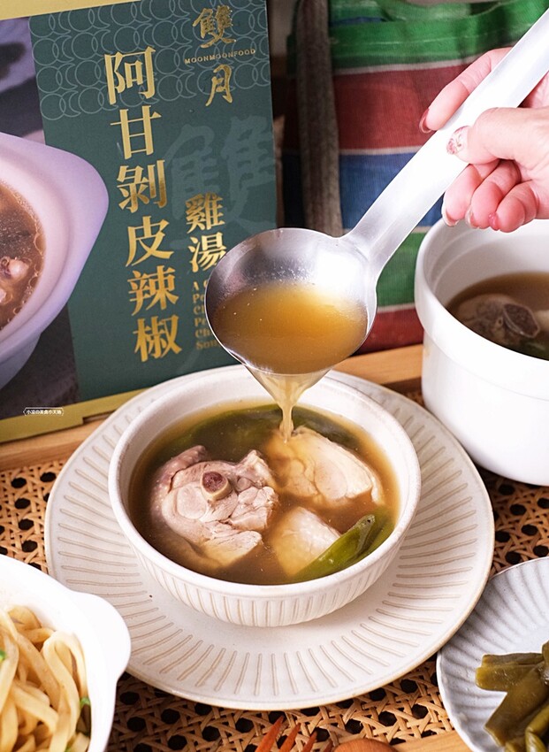 小凉個人覺得雙月推出的阿甘剝皮辣椒雞湯不只是醇香,還另外多附上一包剝皮辣椒加入,讓湯頭更是濃厚不已,不只是單吃滋味令人印象深刻,還能直接將阿甘剝皮辣椒雞湯拿來當火鍋湯頭煮,加上自己喜歡的時蔬、菇類就是一碗超澎湃的剝皮辣椒雞火鍋唷!