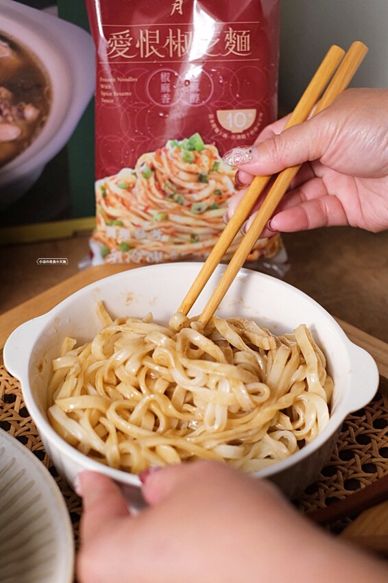 愛恨椒芝麵的麵體是選用南僑中式勁麵(無需退冰),直接冷凍拿出來、放入滾水中煮10秒即可撈起加醬。就算是廚房新手也可以輕鬆煮出一碗香噴噴的拌麵!!