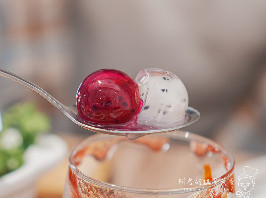 不同於一般盤裝的生菜沙拉,WPAPA的水果沙拉是用杯子裝的,其中,最吸引我的莫過於那晶瑩剔透的果凍,搭配上新鮮的水果及果乾裝飾,並在杯緣淋上了果醬,實在太美了。