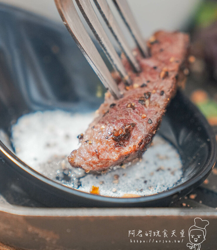 黑胡椒醬的微辣帶著淡淡的甜,與炙烤牛五花鮮美的肉汁,堪稱絕配,每一口都是滋味十足,讓人忍不住一口接著一口。