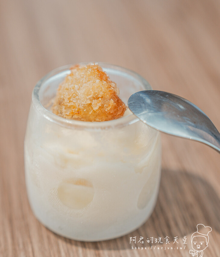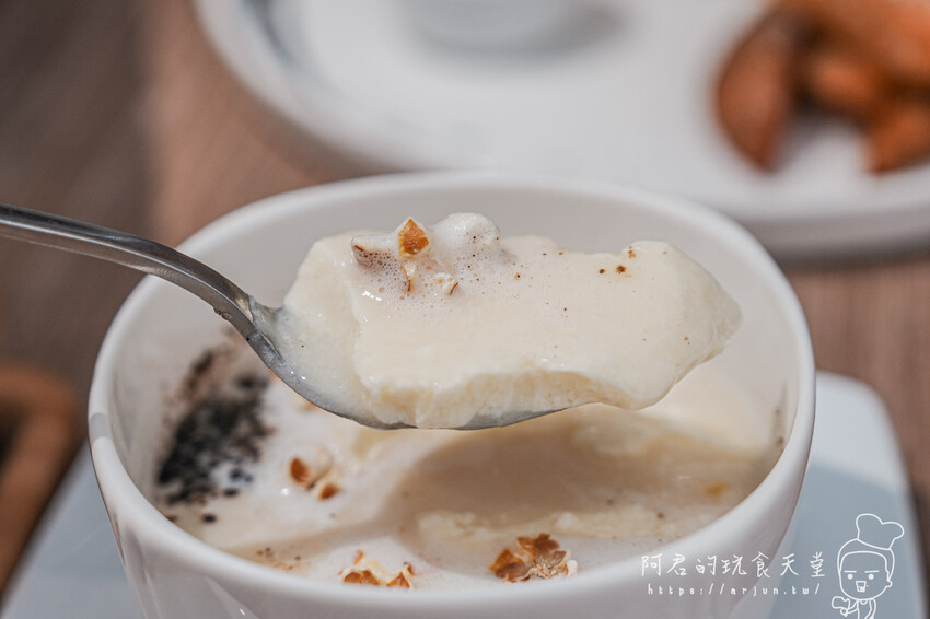 當你慢慢舀到底層時,鹹奶酪的滋味才逐漸浮現,它吃起來好像蒸蛋,與玉米濃湯,呈現出層次分明的口感,淡淡的玉米香和蛋香在口中綻放,非常美味。