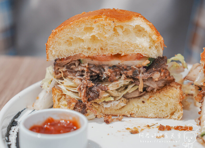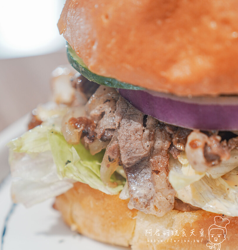 而炙烤牛五花配的黑胡椒醬,更是將這份漢堡推向了另一個高峰。