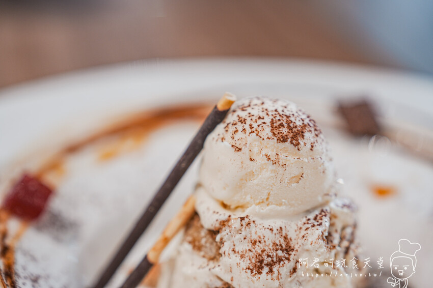 底層的餅乾脆片,在濕潤中多了些許爽脆感,跟著冰淇淋一起吃,恰如其分的為整體更增添了層次。