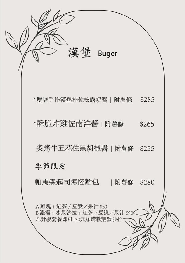 菜單上,從精選鐵板、漢堡到可頌、炸物以及甜點,應有盡有。
