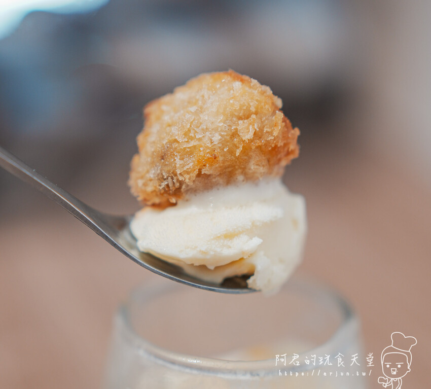 炸香蕉外皮酥脆,裡面的香蕉卻是溫熱且柔軟,帶有一點香蕉煎餅的口感。
