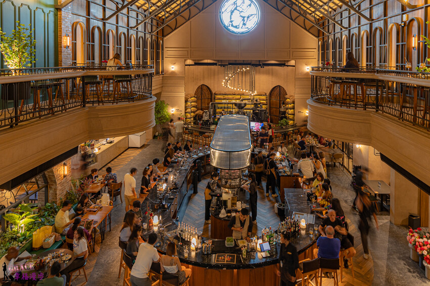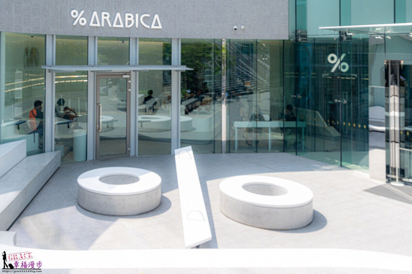 因為前一晚凌晨才到飯店,第二天我們在曼谷市區逛逛,就決定睡飽飽在飯店品嚐美味早餐再出門,因為我們是六個人在曼谷的行程就都搭計程車,來到曼谷第一站就選擇到 % Arabica Bangkok QSNCC喝咖啡,這家咖啡廳是出國前在IG看到的,最吸引我的就是廣場中的%翹翹板,真的相當有創意。