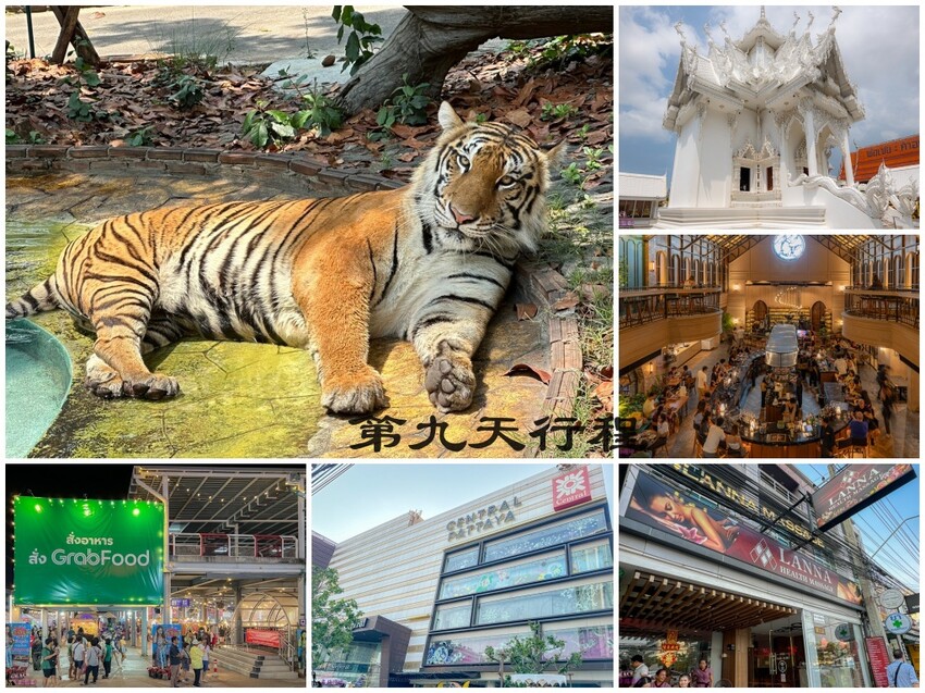 第九天行程Wat Nong Yai-芭達雅老虎園-NITAN Coffee’s Tale-Lanna Health Massage_ Central Festival(尚泰海灘購物中心)-Thepprasit Night Market 芭達雅週末夜市-素萬那普機場 (BKK)機場
