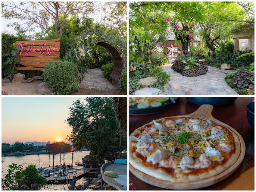 晚餐我們選擇到Tongkan Café用餐,這也是請曼谷幫預約的網美餐廳,這家餐廳就位在桂河河畔,整個餐廳造景每處都很好拍,在這裡可以欣賞桂河最美的夕陽,餐點也都很美味喔!
