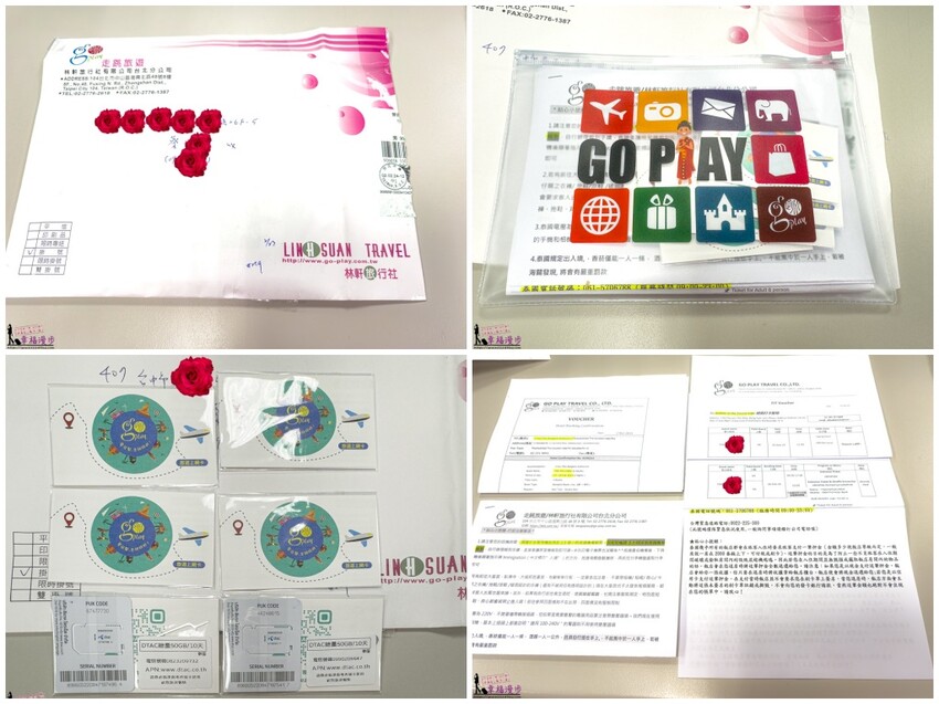 在出發前我們就會收到曼谷幫走跳旅遊寄過來的資訊,竟然還有提供網卡,而且是每個人一張50G的網卡,還有泰國電話號碼可以使用,讓我們方便可以聯絡電話導遊,行程中我們有臨時更改行程,打給電話導遊就馬上幫我們跟司機溝通,還有就是行程有點延遲到餐廳也是請電話導遊幫我們跟餐廳聯絡,真的是太讚的服務,而且旅遊秘書超貼心的幫我們把訂房資訊、門票資訊全部列印下來,還用重點標示,超貼心啊!