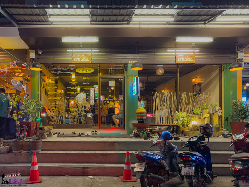 逛完市集後先回飯店放東西,Cross Vibe Bangkok Sukhumvit飯店附近就是安努站平價按摩一條街,我們選擇了這家Takrai Hom Massage shop,這家店在BTS On Nut安努站共有四間店,我們選擇了最新的Takrai Hom Massage 4號店,這裡的按摩價格還蠻便宜的,按得也很不錯喔!