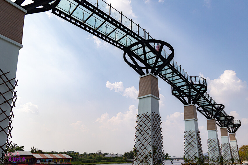 北碧府玻璃棧道Skywalk是在2022年才開幕的,沿著桂河河岸而建,全長有150米,距離桂和河面約有12米,大約4層樓高,可以眺望桂河的景色。