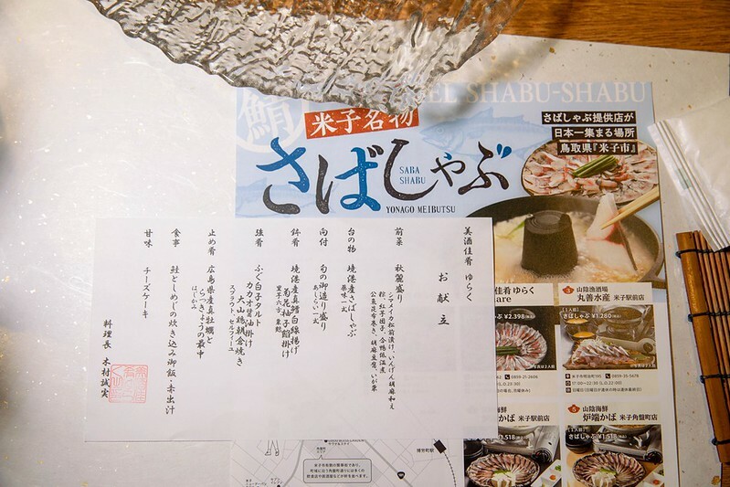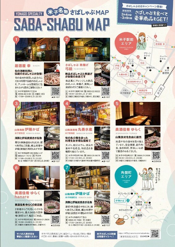 第三樣「鳥取鯖魚三大料理」是這幾年米子紅紅火火的「さばしゃぶ」(鯖魚涮涮鍋),還搞出個さばしゃぶ日(3月8日),甚至每年的前後還推出「さばしゃぶ」祭,日本人就是會(笑),於是有了這張「さばしゃぶ日地圖」,基本上這幾家有さばしゃぶ店都在米子車站周邊,今年就來分享第一家「美酒佳肴ゆらく」。