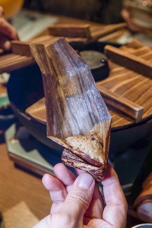 前菜是秋天的盛合,裡面有各種日本、鳥取秋天的食材,魚、雞肉、鴨肉、粟子、芋、豆腐等,雖說是居酒屋,但這些會席料理還是相當有水準,當中最特別的是加了胡麻醬汁的肉粽,據說是以前米子某些祭典時常見的家庭料理,整體吃起來還真和台灣的粽子頗像。