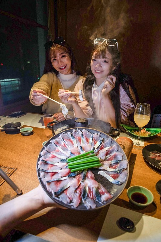 帶皮一起涮(柴魚高湯)的鯖魚軟嫩中帶著一點點微咬勁,沾食柑橘醬汁最為討喜,就連兩位不太吃生魚的妹子都吃到差點搶起來,如果有機會來米子,請務必試試這米子名物。