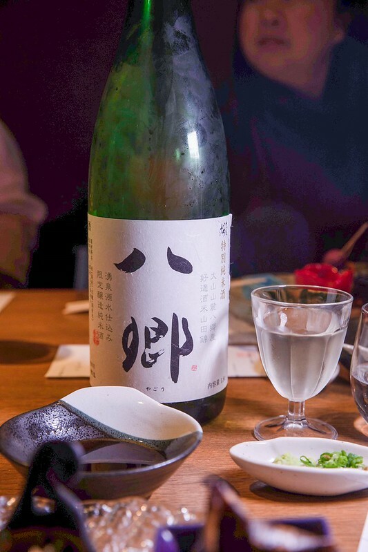 八郷(やごう)特別純米酒(鳥取/久米櫻酒造),精米歩合60,用的是鳥取山田錦,用的是大山腳下的泉水,另一隻銘柄是「久米桜」都是鳥取很常見的地酒,單喝時酒香清爽,甘、辛、甚至是後端的米旨都討人喜歡,適合開場搭配小菜,或是單飲乾杯酒。