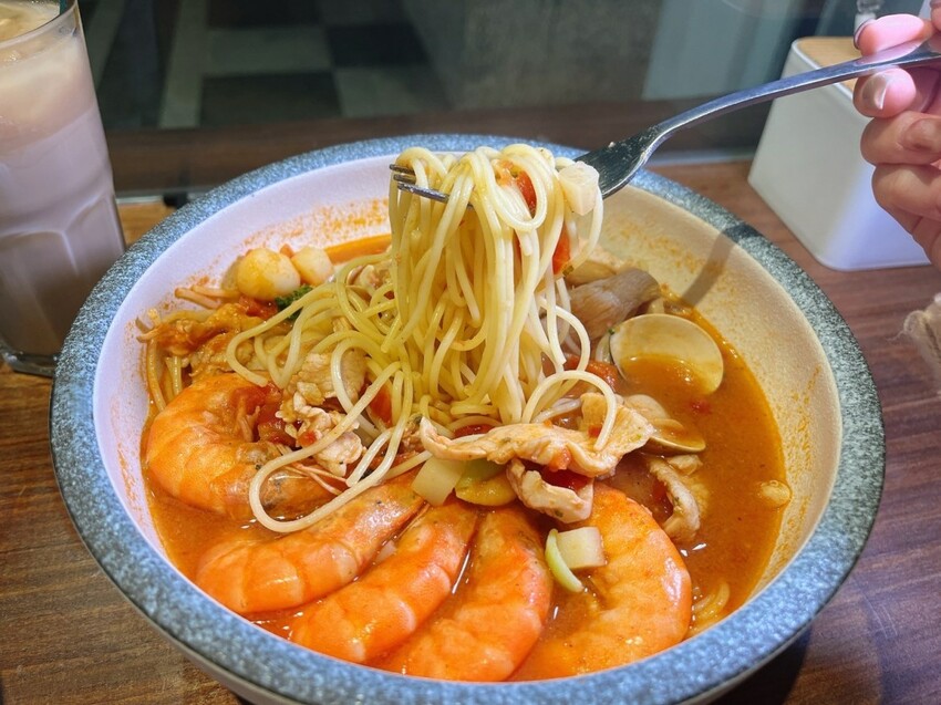 他們家海陸總匯義式湯麵的配料真的很豐富!滿滿的餡料都已經把義大利麵給遮住了🤩