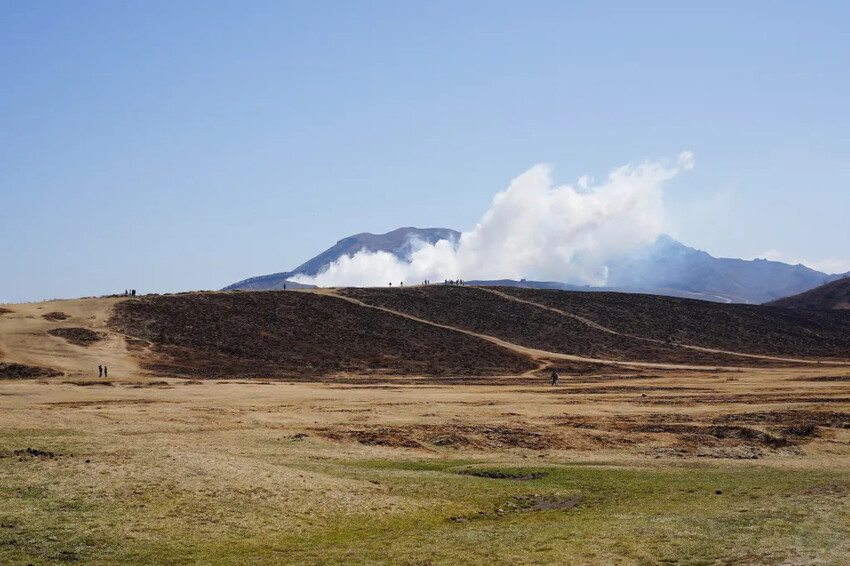遠遠看就可以看到阿蘇火山在冒煙,有些旅客來這邊會聞到異味,不過旅咖這次來好像沒有聞到什麼味道耶,好像只聞到燒焦的味道!!