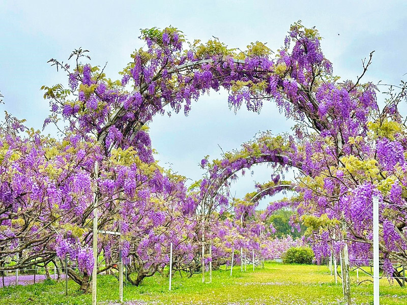 日本最有名的紫藤花園莫過於栃木縣的足利花卉公園,而且是日本唯一被CNN選為『世界10大夢幻旅遊景點』的地方,足利花卉公園最佳賞花期約在每年的4月中~5月中旬,之前看到日本好友Koji在足利花卉公園拍的照片就很想去拜訪,幸好不用遠赴日本,目前在淡水就能看到全台最大,也是唯一被日本認證的紫藤花園了