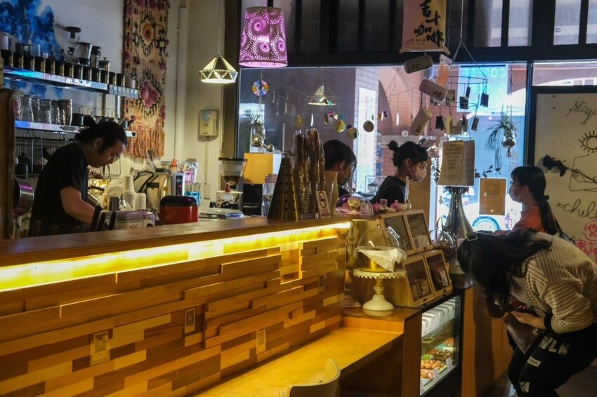 ▼【吉十咖啡 】用餐環境充滿神祕氛圍,大約可以容納30人左右,可以看到老闆蒐集的許多彩繪掛飾,整個小而巧的空間別有風情。
