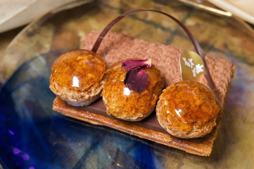 ▼充滿大人系風味的巧克力聖多諾黑,嚴選法國單一產區可可+在地小農無毒玫瑰,濃苦中帶點可可酸度,尾韻成熟深厚不死甜!
