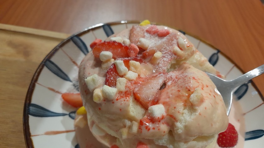 整個舒芙蕾的構造包括蓬鬆的舒芙蕾外皮,內含柔軟的內餡,再搭配新鮮的草莓以及小小的棉花糖,吃起來更是極佳挺不錯吃的