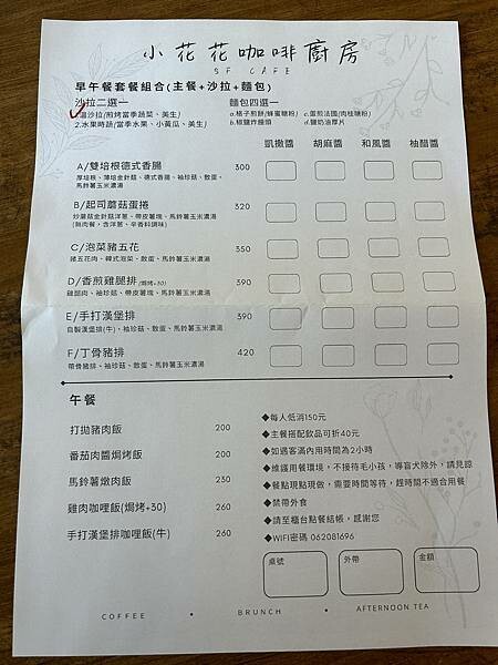 餐點的部份主要是早午餐、午餐、輕食、鬆餅及飲品。