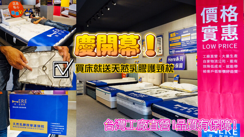 - 詳細體驗:30年老字號MIT床墊!台灣工廠直營!慶開幕買床送乳膠按摩護頸枕