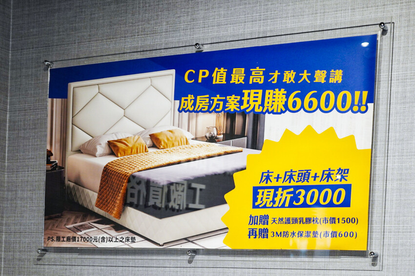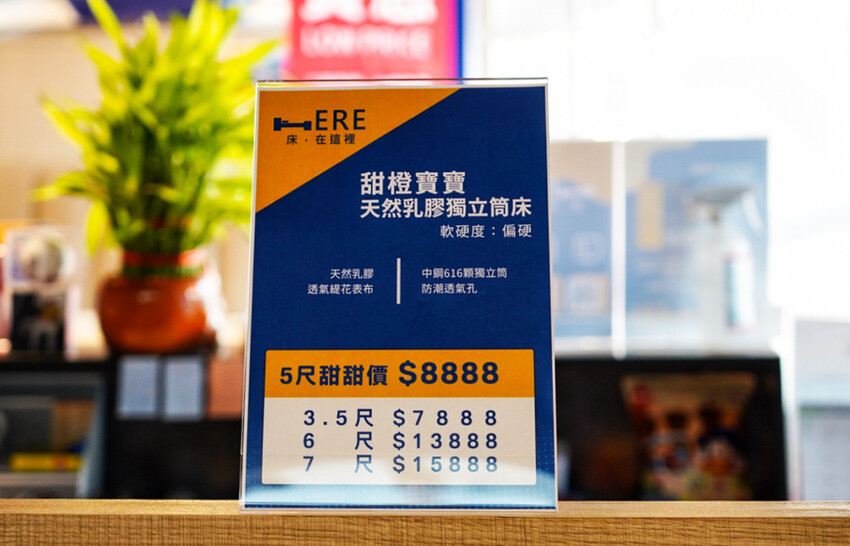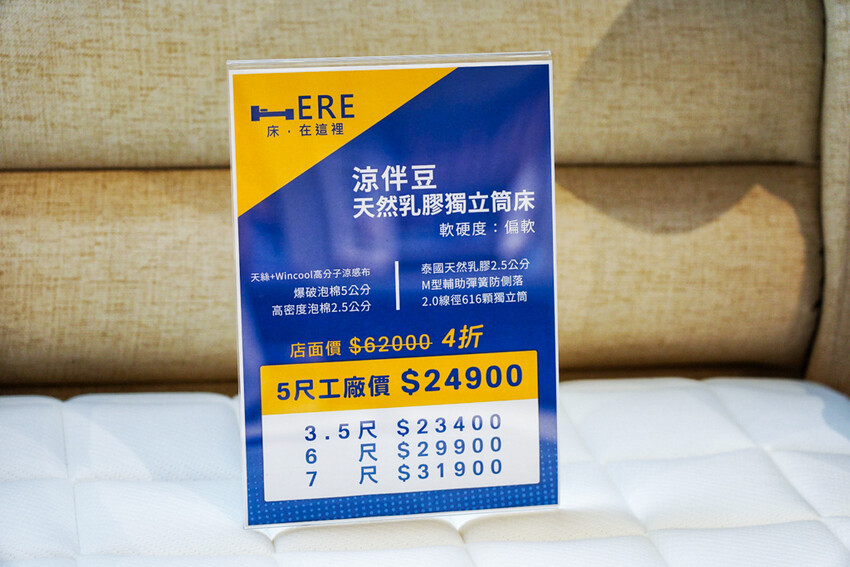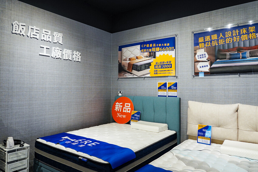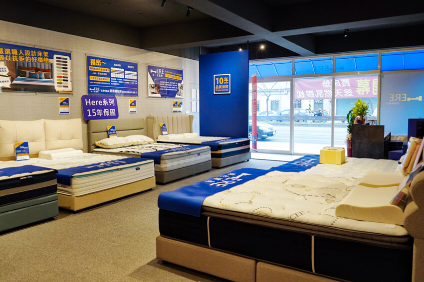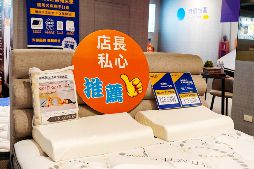 床墊都是台灣工廠製作,展示區有多種床墊試躺,乳膠長纖獨立筒床、益生菌床墊、冰晶絲涼感獨立筒床墊、超導石墨烯獨立筒床墊、乳膠竹炭獨立筒床墊…等,甜甜價天然乳膠獨立筒床,5尺才8888元賣完就沒有啦!獨立筒床10年保證、無毒環保,還榮獲ISPA國際睡眠協會認證~