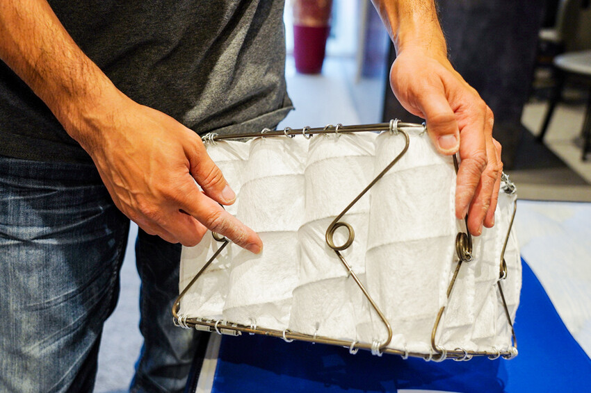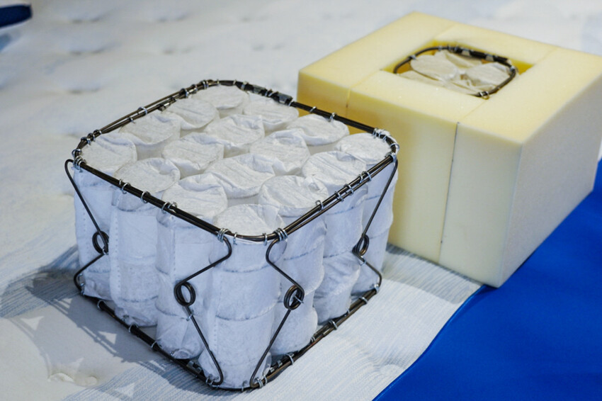 門市大姐還拿出獨立筒給我們看!床墊都使用台灣中鋼高碳鋼獨立筒,六環半強化承重力,可適應身體輪廓、減輕壓力點~