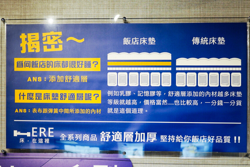 經過解說才知道!為什麼高級飯店床墊特別好睡!原來是乳膠、記憶膠上方有一層加厚的舒適層,床墊裡加了乳膠層或爆破爆棉,可支撐身體床墊更舒適,床墊太薄無法支撐身體,睡起來容易腰痠背痛,25公分以上的床墊睡起來最舒服~