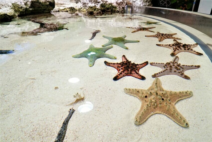 如果有帶小孩的爸爸媽媽們,也可以讓孩子在礁底小生物觸摸池裡觸碰海星、海參,還有40多種珊瑚,對小寶貝們來說一定是深刻難忘的體驗!