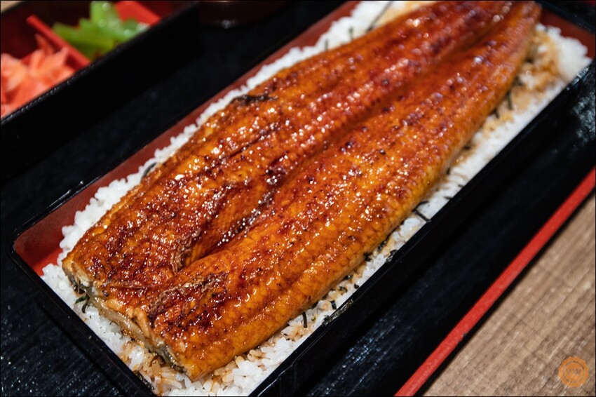 一本鰻的部份則是都由師傅現點現烤製作而成,而且在碳火的過程中再刷上特調的醬汁,讓鰻魚可以達到外焦內嫩的優質口感。因為大江戶町鰻屋都是採用出口等級的高級鰻魚,再以純熟技巧的手法去除魚刺,而一本鰻定食,則是選用頂規5P大小的活力新鰻,再以直火碳烤而成。而5P指的是一公斤有5尾鰻魚,所以在肉質上也較纖細且幾乎是幼刺之外、口感上較沒有土味,也就更能展現鰻魚細緻鮮美的原有風味。