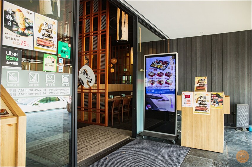採用日式風的設計,門外還有適用身障族的無障礙坡道,店門口還有個電視牆,播放當日供應的定食便當之外,也有多項餐點資訊供客人參考。