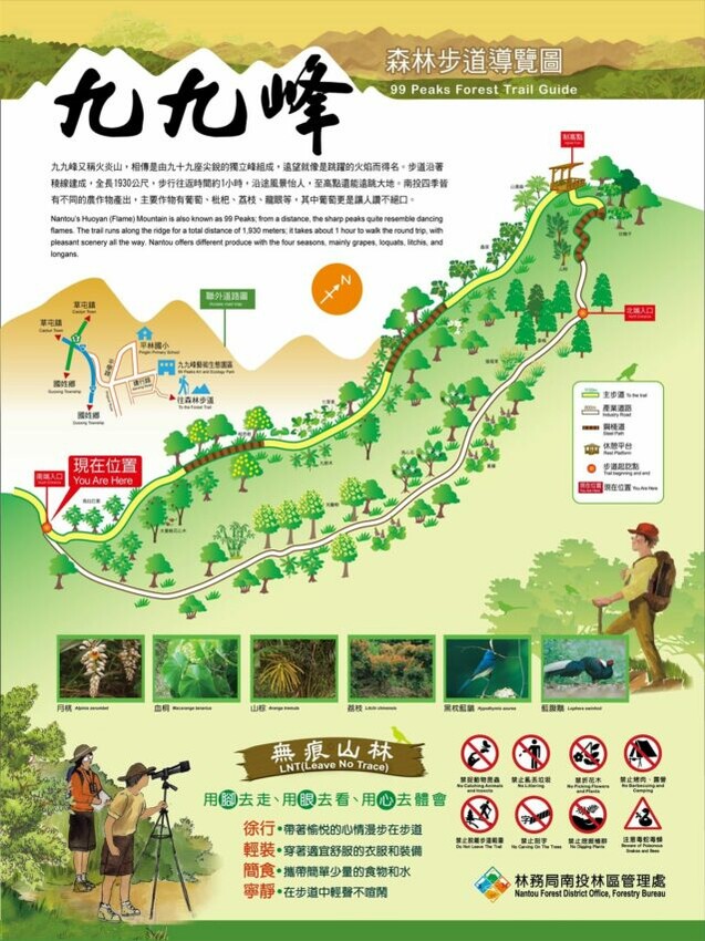 ※南端多階梯,北端產業道路為主,可考量自身體力腳力及膝蓋狀況挑選上下山路線。※九九峰因周邊地質鬆軟,請勿跨越步道圍欄外以免發生危險。