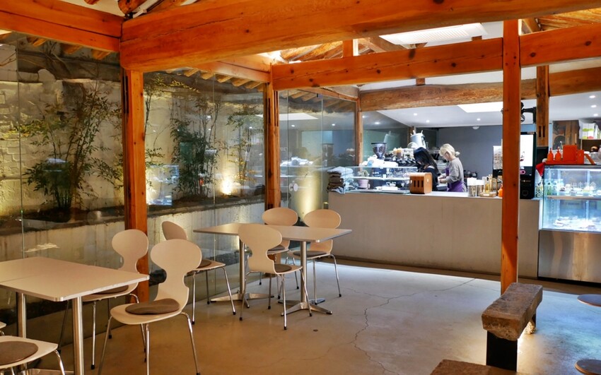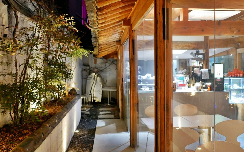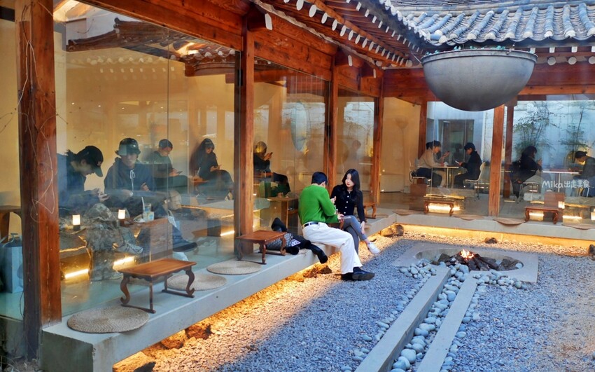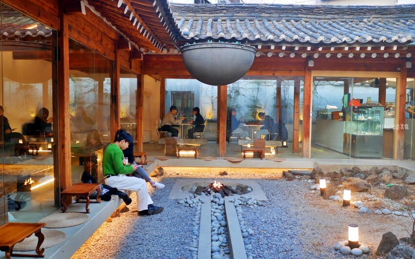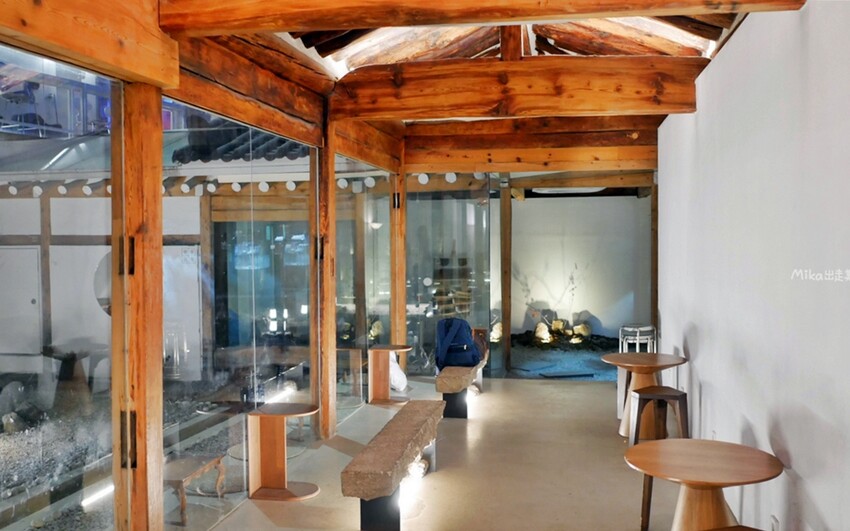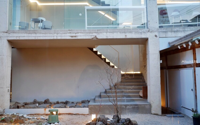 將韓屋與現代清水模建築結合,毫無違和感,整個好復古又時尚。