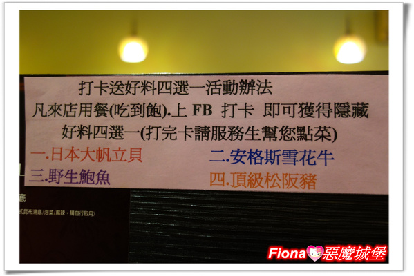 還有打卡送好料四選一活動,我們選了安格斯雪花牛+頂級松阪豬,光看名稱就很讚吧!!期待.....