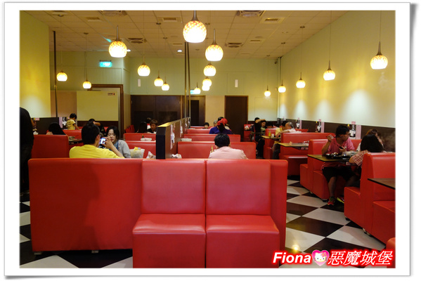 座位區的沙發也是採用紅色系,與黑白交錯的菱形的地板形成對比,看起來還挺有復古的味道呢!!