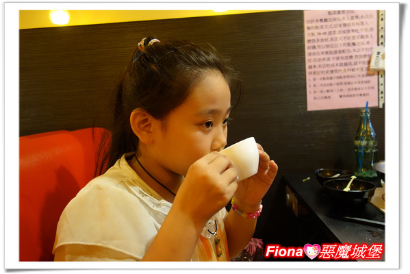餐後,媽咪來杯熱騰騰的咖啡,Fiona也喝了杯朝思暮想的奶茶~~