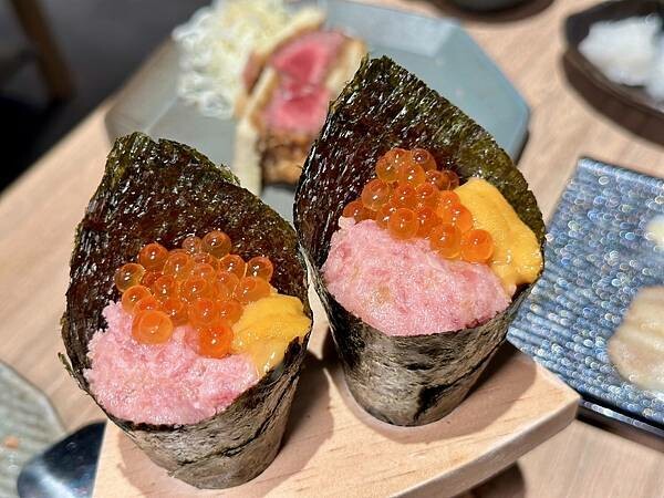 綿密的鮪魚泥+爆汁的鮭魚卵&滑順鮮甜的海膽,