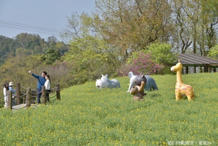 有大象.河馬.長頸鹿.熊與猴子矗立在花海中