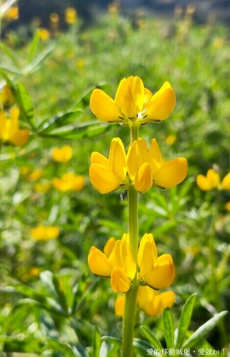 黃澄澄的魯冰花盛開在一隴一隴的茶樹間,成為貓空茶園間的點點繁星