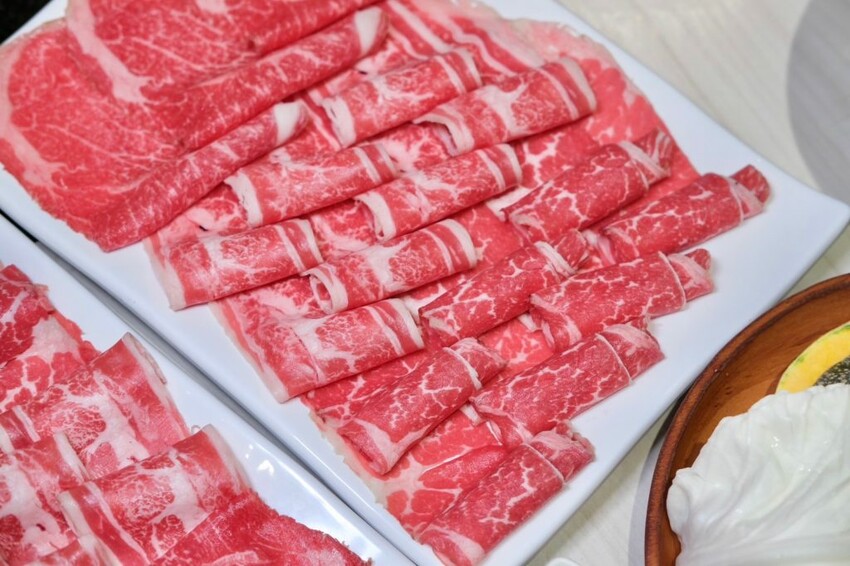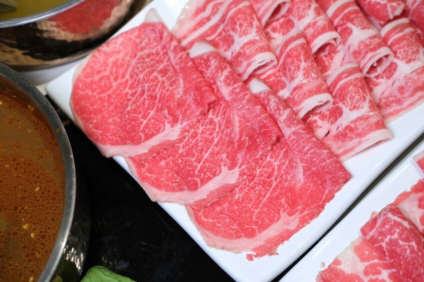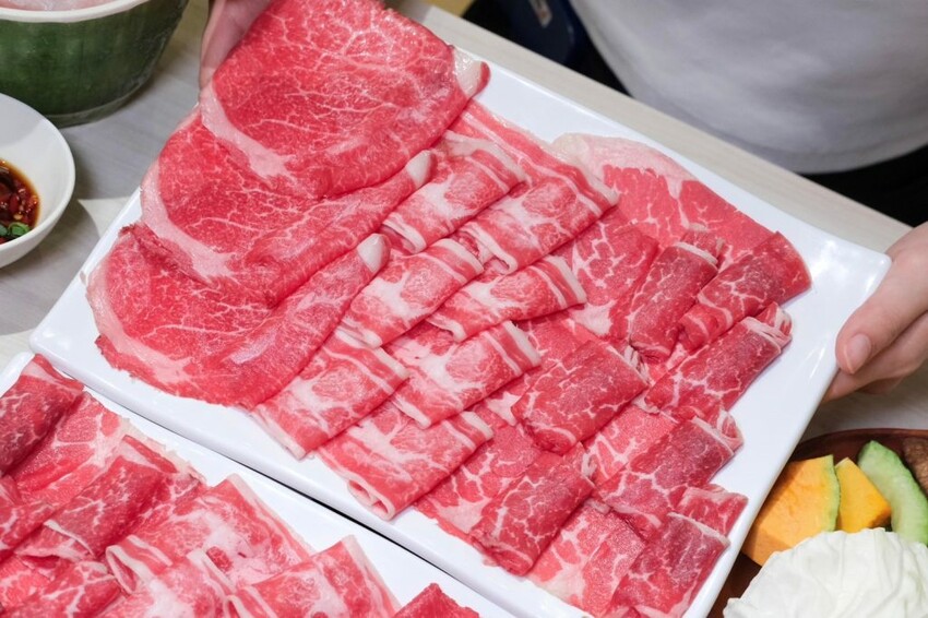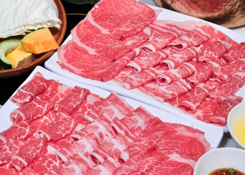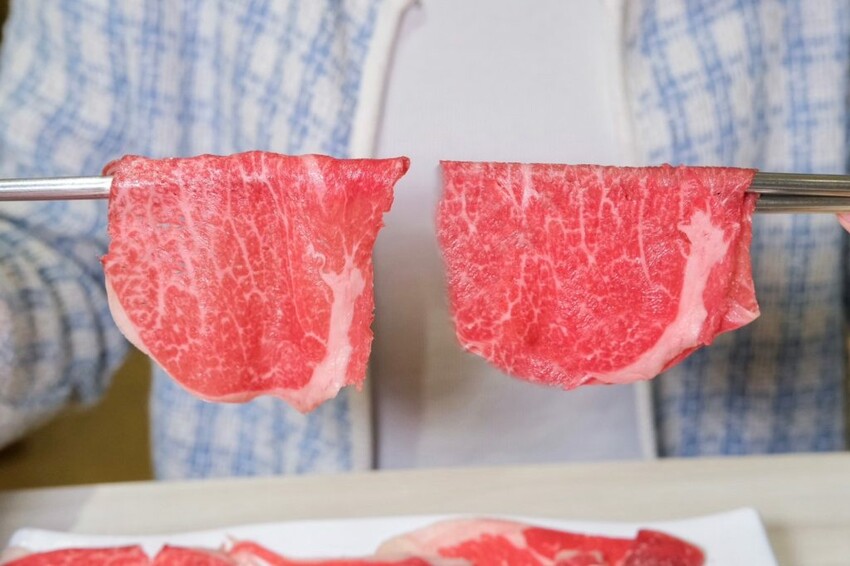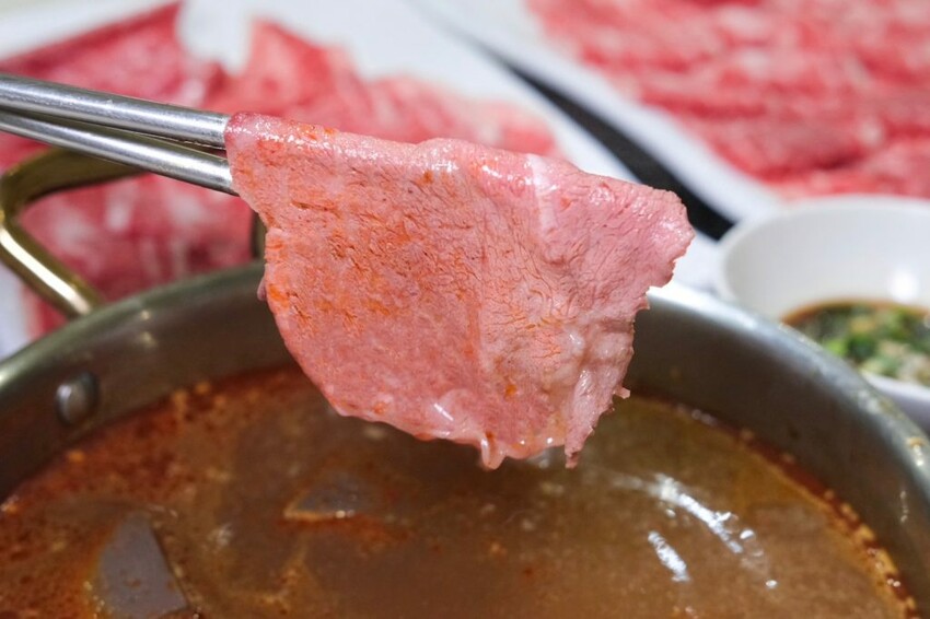▼油花細緻的頂級A5和牛,只要輕涮幾下就可以入口,軟嫩多汁的肉感超級讚,另外兩款雪花牛和翼板牛同樣毫不遜色,吃起來的肉質也都很新鮮優秀!