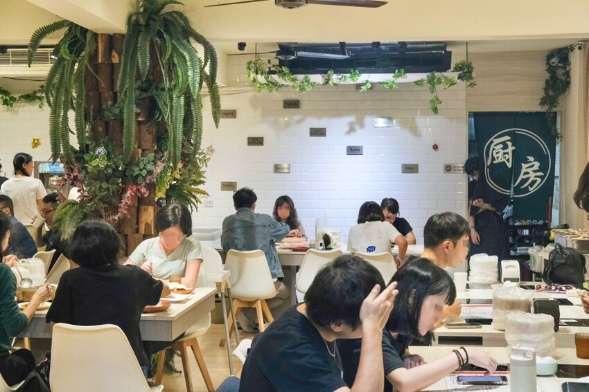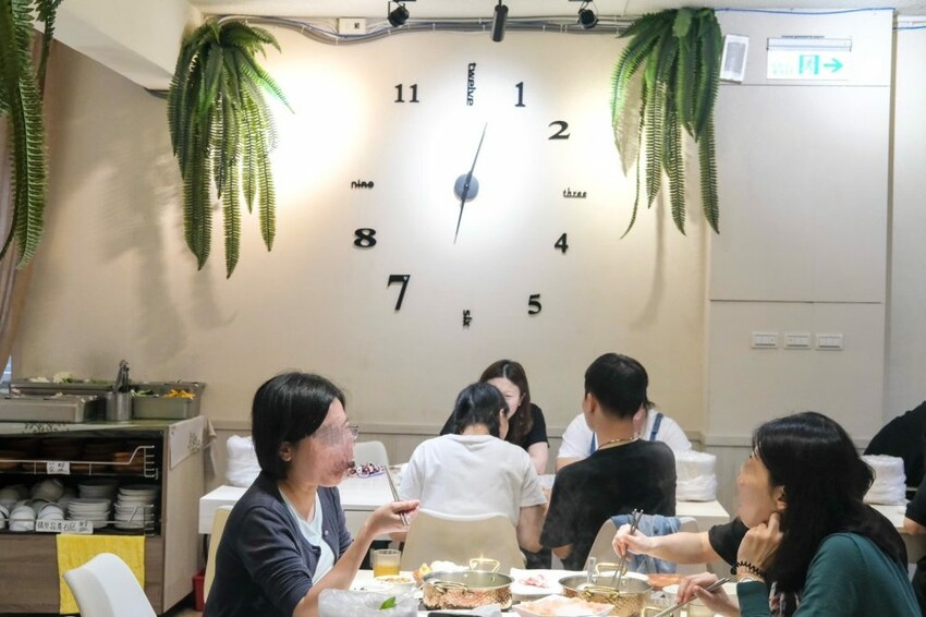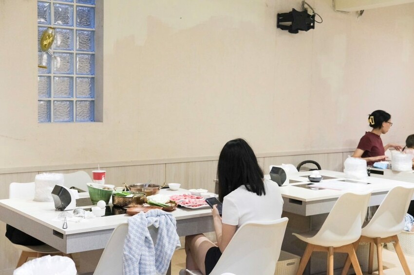▼【桐采TC Shabu】環境以純白清新的設計為主軸,在綠意植栽的點綴下充滿舒適感,主要是兩~四人座位,無論是獨自來或是朋友聚會都很適合,生意超好開店不久就迅速滿座。