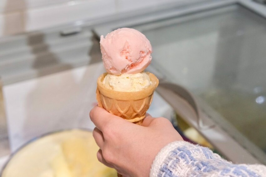 ▼冰淇淋和霜淇淋還有附甜筒餅乾搭配,脆脆的口感超加分!
