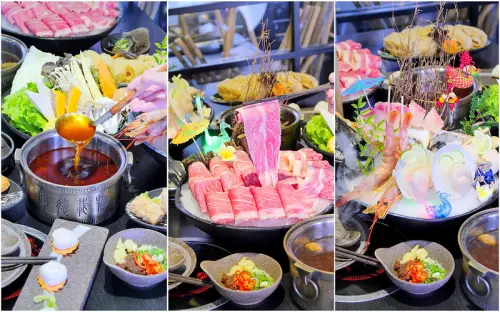 霜降牛*1盤、無骨牛小排*1盤、伊比利豬梅花*1盤、松阪豬*1盤、天使紅蝦*4隻、活凍大甜白蝦*12隻、活凍鮑魚*4顆、鯛魚片*10片、鮮透抽 2隻、大文蛤 1斤、蝦Q滑*1份、滷三寶*1份、火鍋料*1份、菜盤*2盤、飲品*1壺、湯底為川蜀麻辣鍋及黃金昆布鍋1份。(可加價更換其他口味湯底)