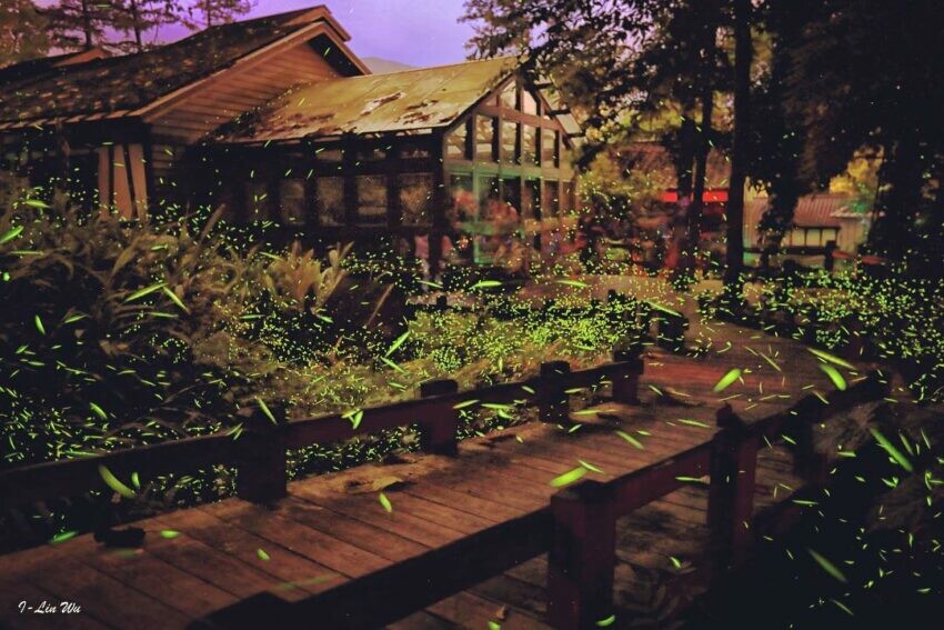 由木製結構建造而成外貌酷似日式舊宅的【南投內湖國小】,有著全台最美的森林小學之稱,也因座落在「妖怪村」不遠處,成為遊溪頭大家不陌生的景點之一。入夜後的夏日晚間,溜滑梯草皮上漸漸出現點點星光低飛,再往內走還可看到螢火蟲穿梭在木棧道及木製屋舍之中。