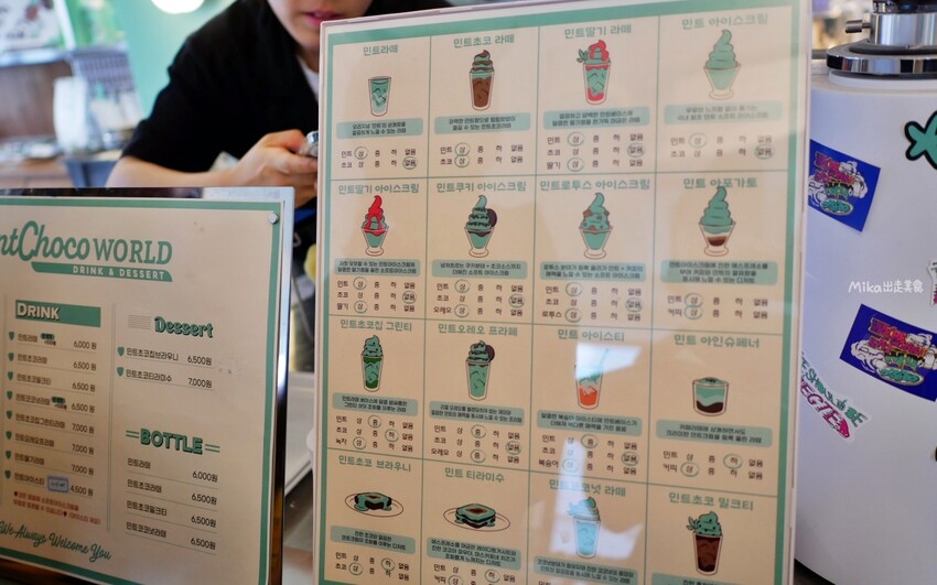 韓國人竟然愛薄荷巧克力愛到開了一家咖啡廳,滿滿的薄荷綠,各種甜點、飲料、霜淇淋全都是薄荷巧克力口味,第一次被滿滿的薄巧攻擊,好幸福啊!這家位於弘大 延南洞這裡,生意很好,經常需要排隊,建議先來登記候位後,再去附近逛逛,邊逛邊等。