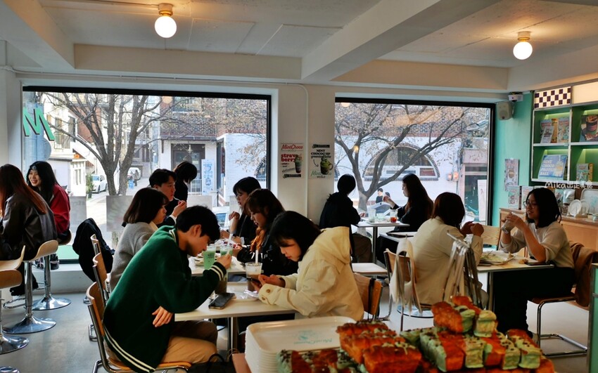 望遠市場(紫蘇刀削麵)(炸辣椒)👉瀑布咖啡廳(카페 폭포)👉延南洞oats coffee(오츠커피 연남 )Oatscoffee Yeonnam👉민트초코월드 (mintchoco world)👉Pungcheon Jangeo(eel)烤鰻魚。