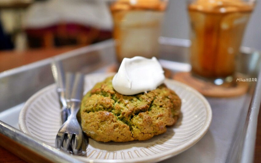抹茶司康餅上面也有雲朵奶油,搭配起來特別好吃